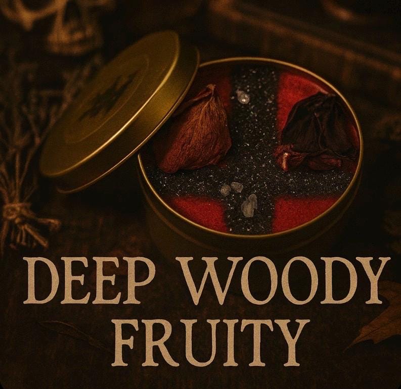 This line features 8-ounce soy candles that have been carefully researched to aid in the cultivation of the listed Diety. While we don’t divulge secret ingredients, the scent profile is included on each product photo.